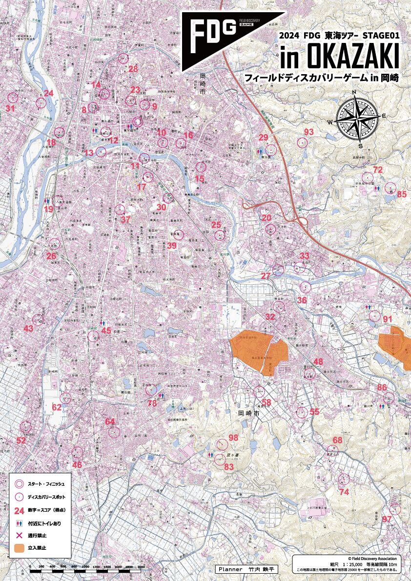2024年9月に開催したイベント「FDG in 岡崎」の地図とDS一覧表の紙のセットです。