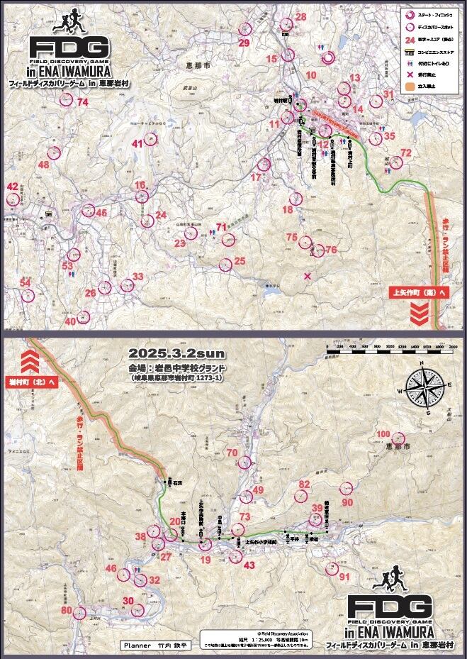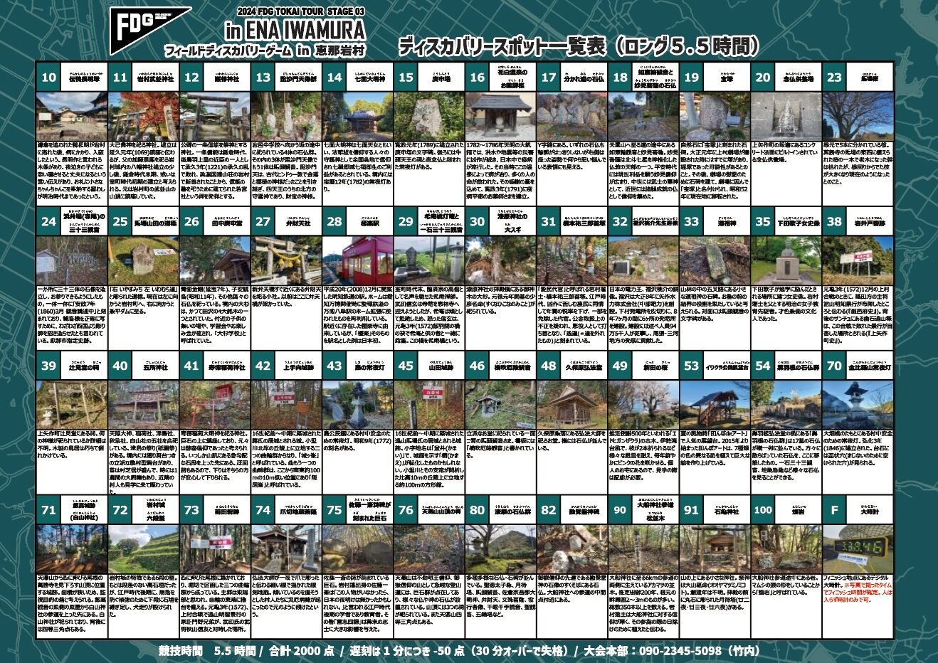2024年9月に開催したイベント「FDG in 恵那」の地図とDS一覧表の紙のセットです。